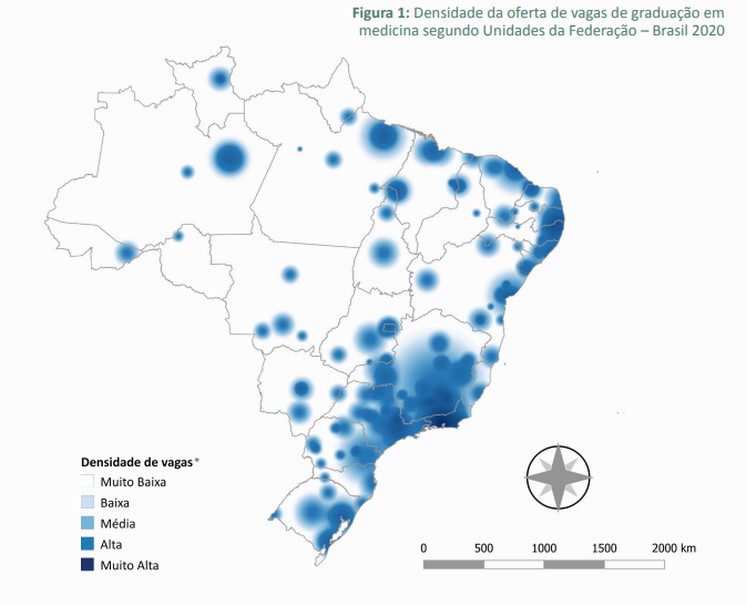 Retirado do site oficial do Governo Federal, o dado de 2020 mostra a densidade da oferta de vagas de graduação em Medicina segundo as Unidades de Federação do país: