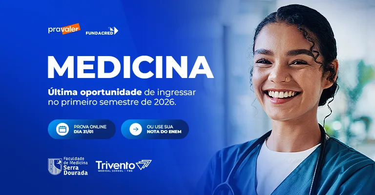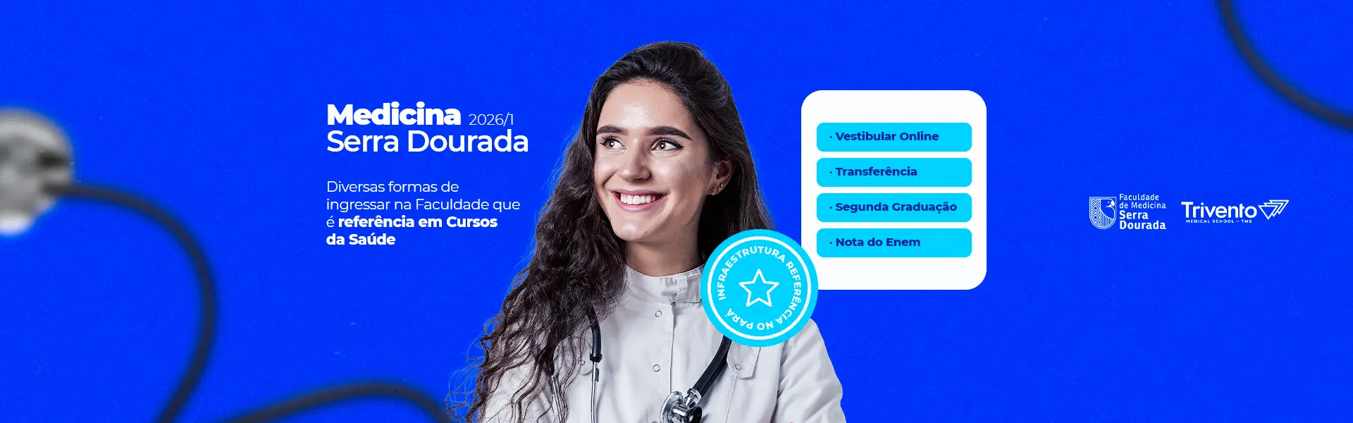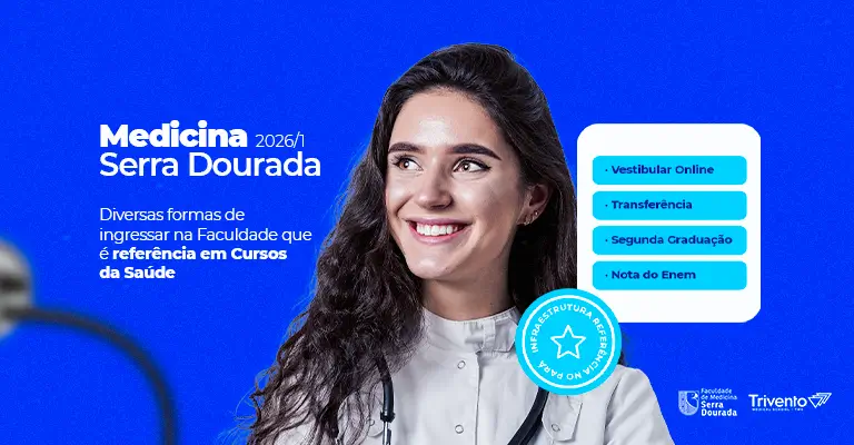 Faça uma única prova que vale para as duas unidades da Trivento Medical School. Escolha estudar na Faculdade Serra Dourada de Altamira/PA ou em Lorena/SP. Você também pode se inscrever com nota do ENEM, por Transferência ou Segunda Graduação.